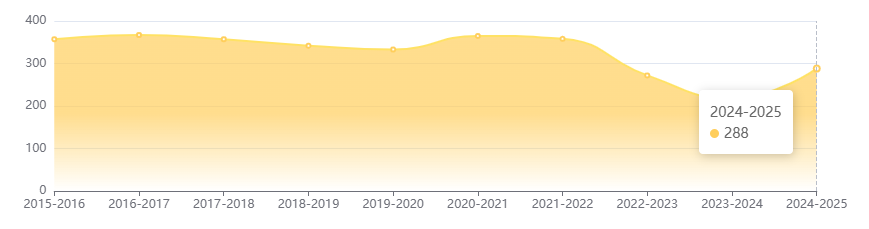 期刊年发文量自2021年起呈现波动的趋势,2024-2025年为288篇,文章质量高。