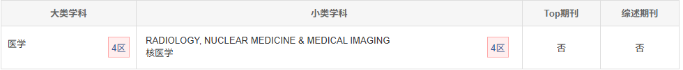 (1) 分区:期刊位于中科院大类-医学4区,在小类-核医学位于4区。