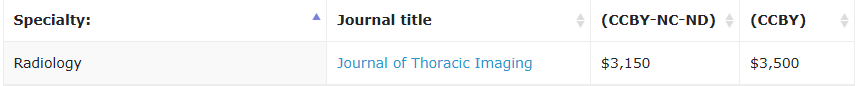 JOURNAL OF THORACIC IMAGING是一本混合获取期刊,支持传统订阅和OA订阅两种模式,其中OA订阅需支付3500美元,约合人民币2.6w元。